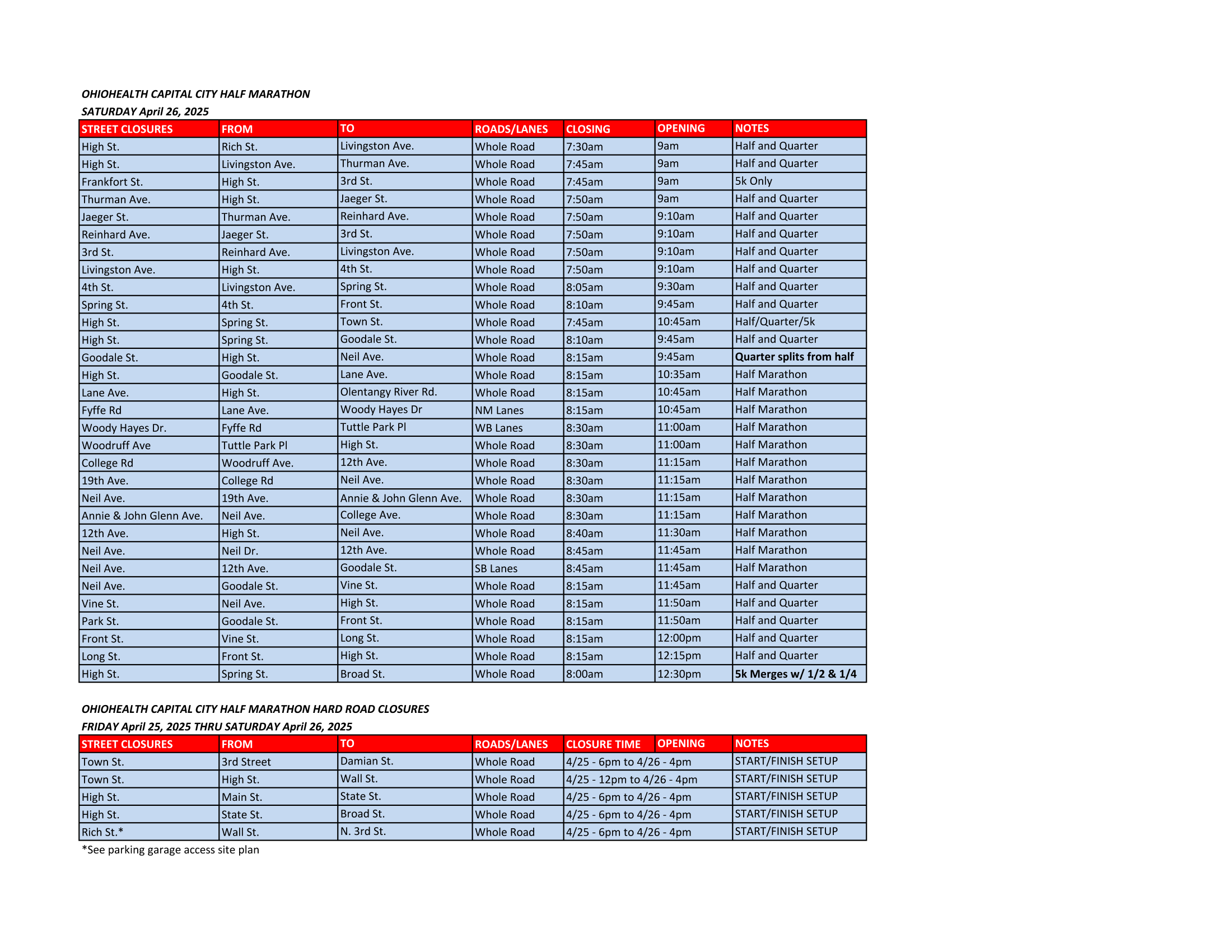The 2025 OhioHealth Capital City Half Marathon, OhioHealth Quarter Marathon and Columbus Promise 5K will be held on Saturday, April 26