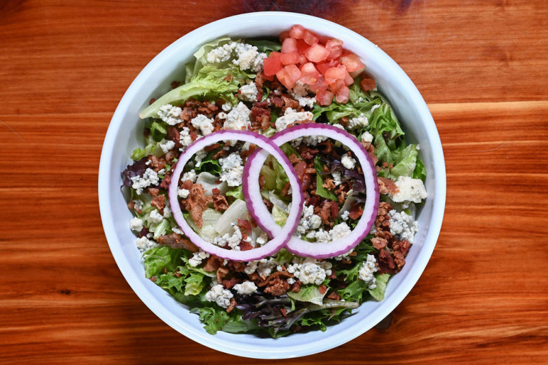 - The RBB: Mixed lettuce with bacon bits, bleu cheese crumbles, tomatoes and red onions.